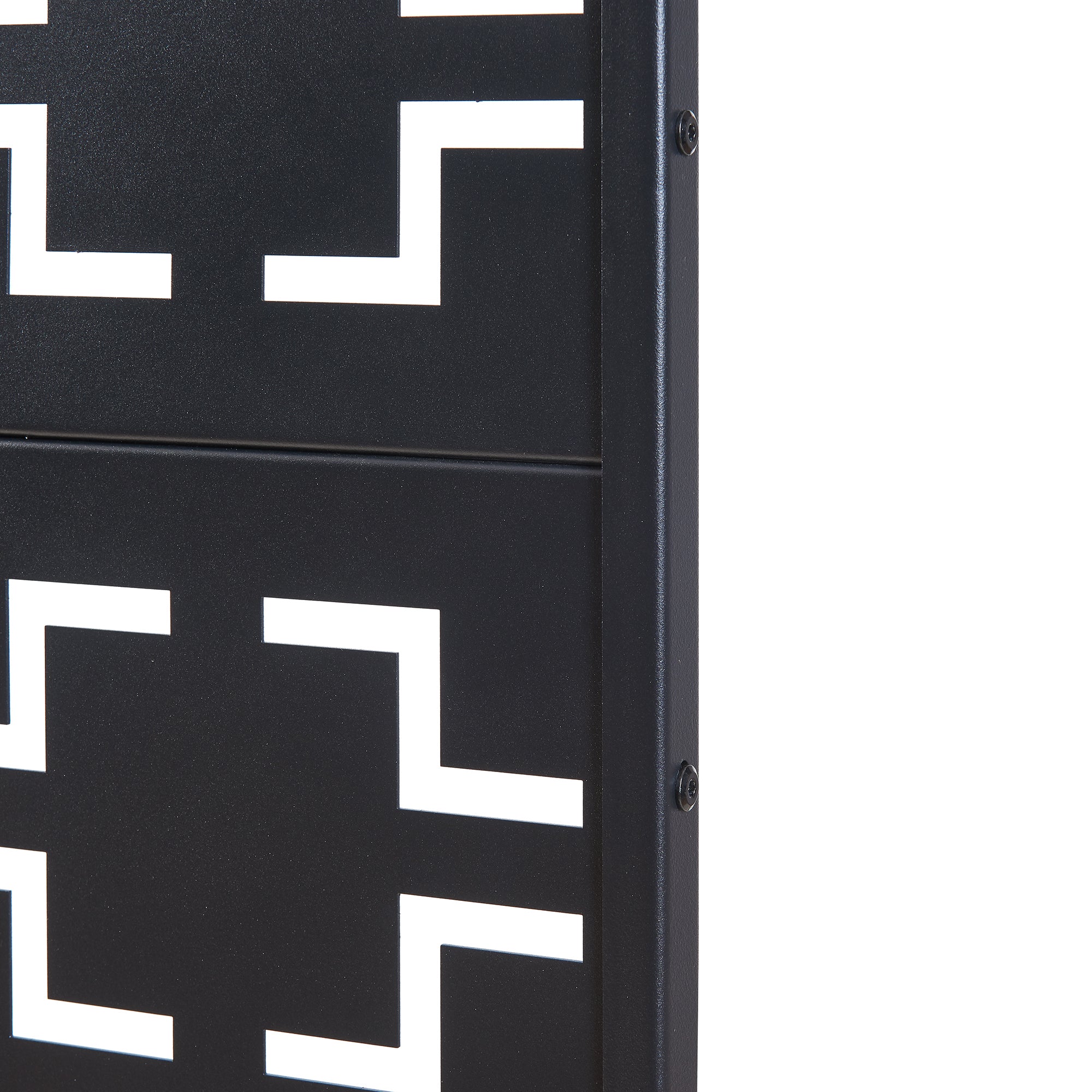 El biombo está fabricado con metal de alta calidad con cortes precisos que generan un atractivo juego de luces y sombras. Es ideal para diseñar ambientes modernos tanto residenciales como laborales.