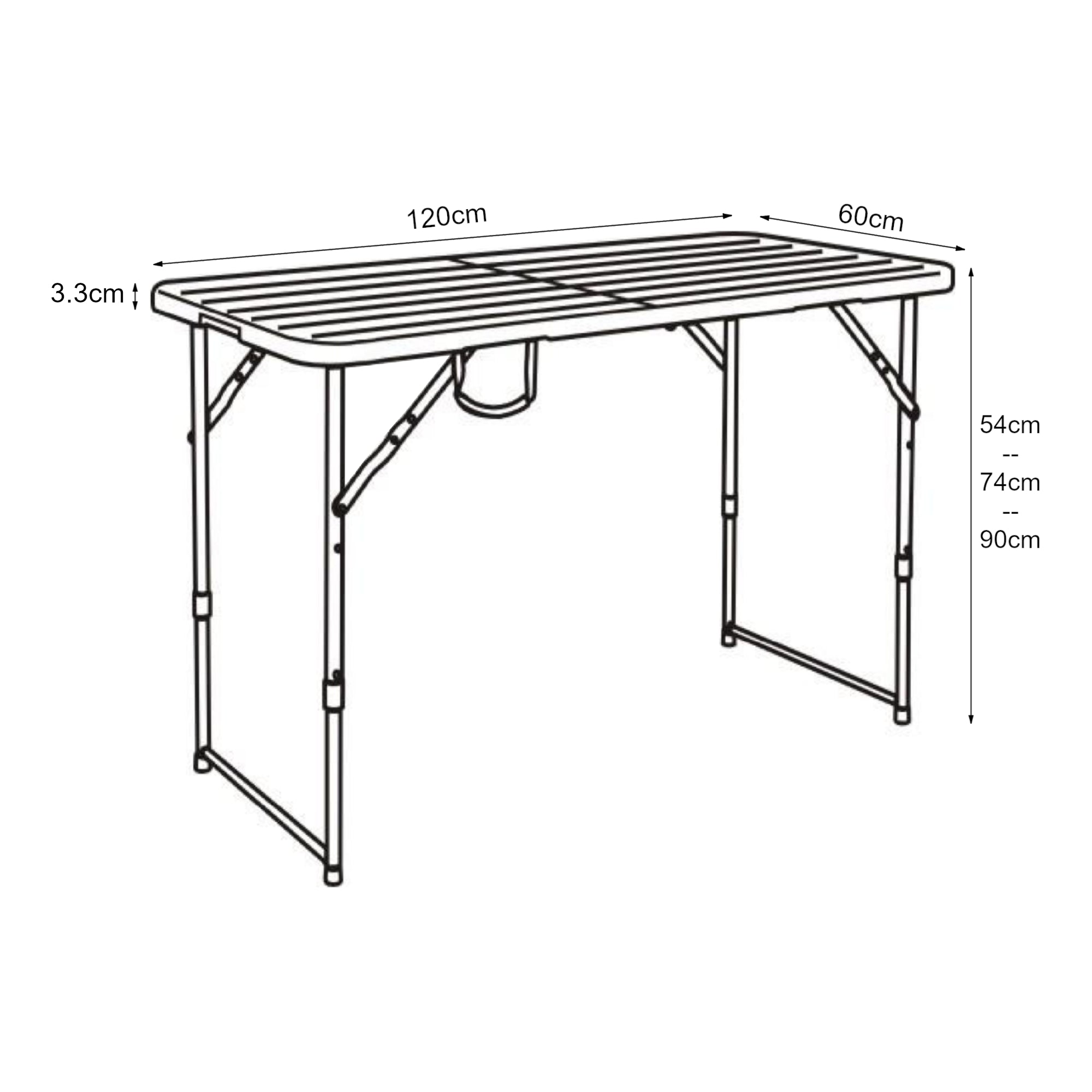 La mesa plegable ajustable en altura es un complemento excelente para cualquier espacio exterior y es ideal para picnics, visitas a festivales o eventos al aire libre. Su robustez y resistencia a la intemperie la convierten en la compañera perfecta para todo tipo de actividades al aire libre.
