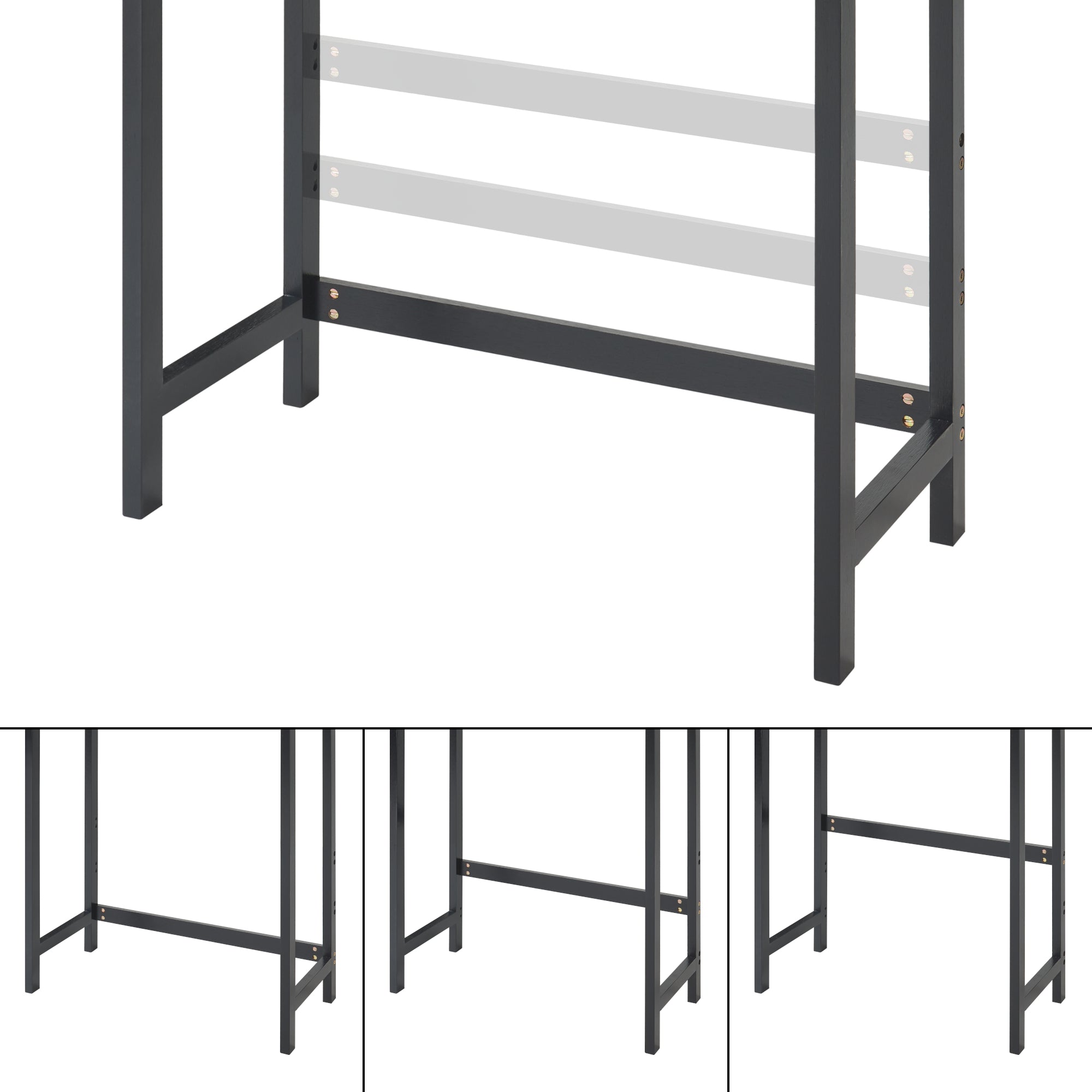 El montaje es sencillo y el material necesario para ello está incluido en el envío. El estante para inodoro dispone de una barra transversal ajustable en altura en la parte inferior, que junto con la estructura proporciona estabilidad. Se puede ajustar a tres alturas diferentes para dejar espacio para tuberías de agua u otros obstáculos sin afectar la estabilidad del estante.