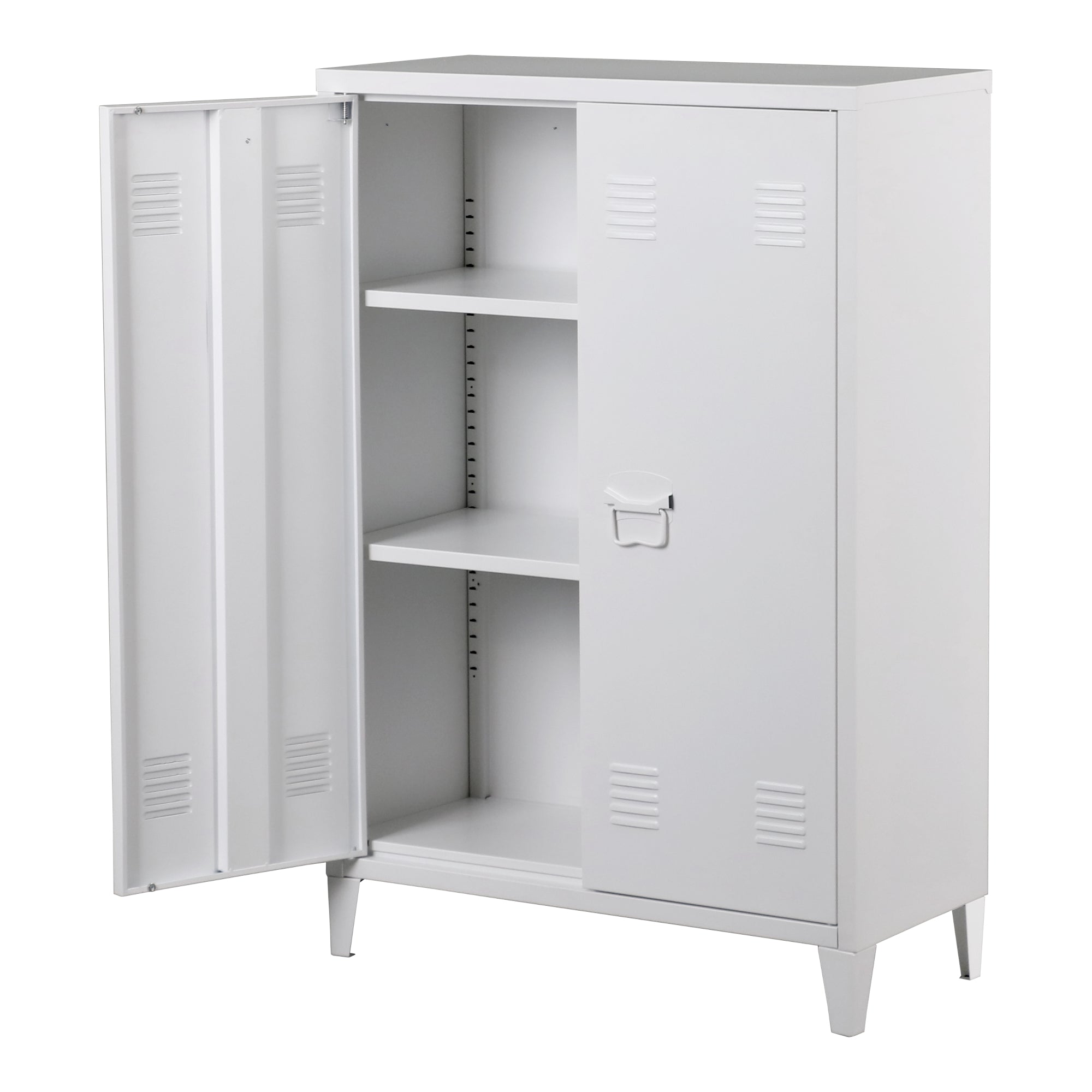 - Armario de almacenamiento con dos estantes ajustables en altura en el interior