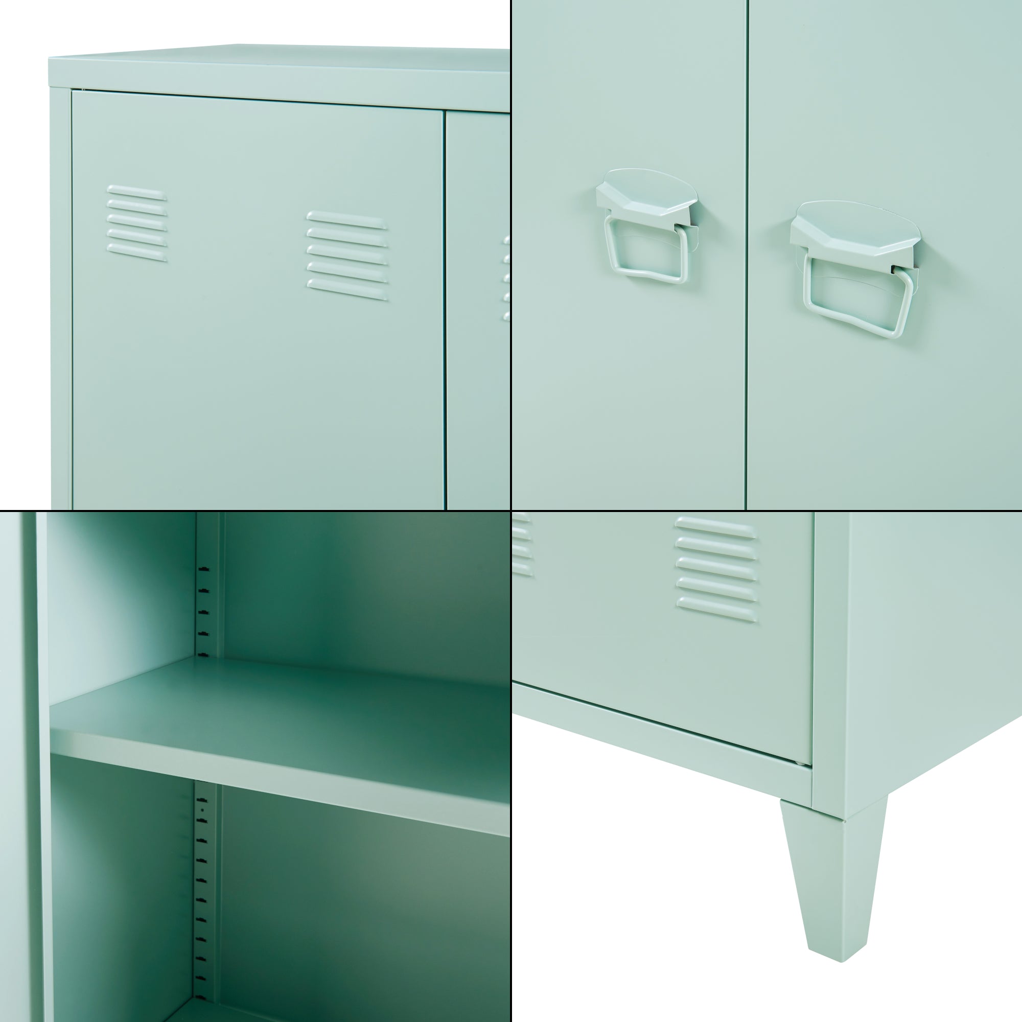 - Armario de almacenamiento con dos estantes ajustables en altura en el interior