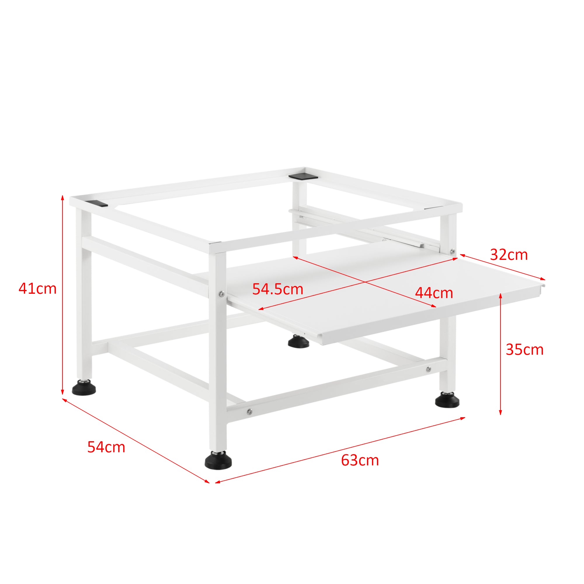 La estructura inferior estable y robusta eleva la posición de todas las lavadoras y secadoras comunes. Esto hace que cargar y descargar la ropa sea más cómodo. Un marco elevado evita que el aparato se caiga del pedestal. Las patas garantizan además una posición segura.