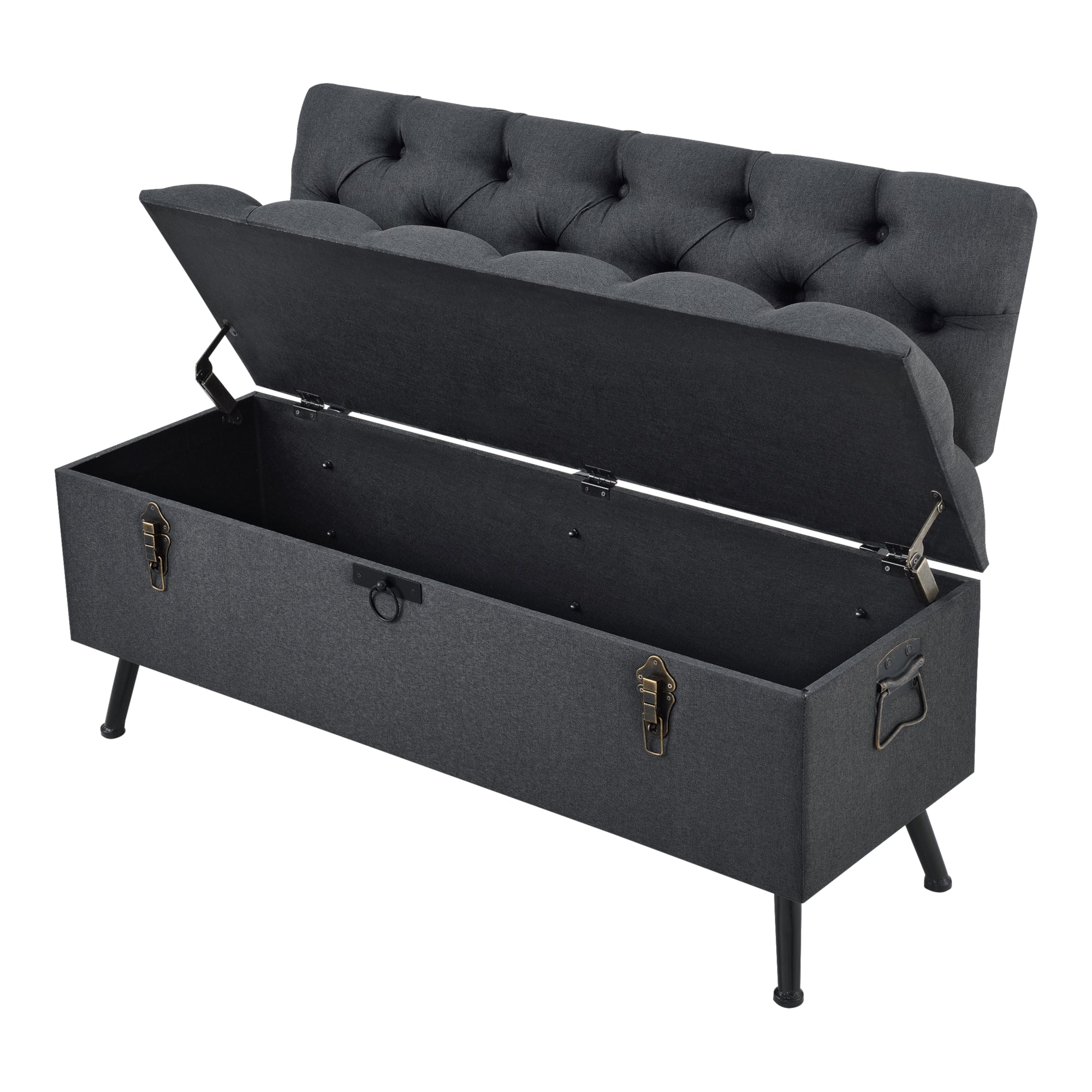 El banco baúl decorativo y acolchado con respaldo es ideal para su sala de estar. No solo ofrece un asiento, sino también un espacio de almacenamiento práctico gracias al asiento abatible.