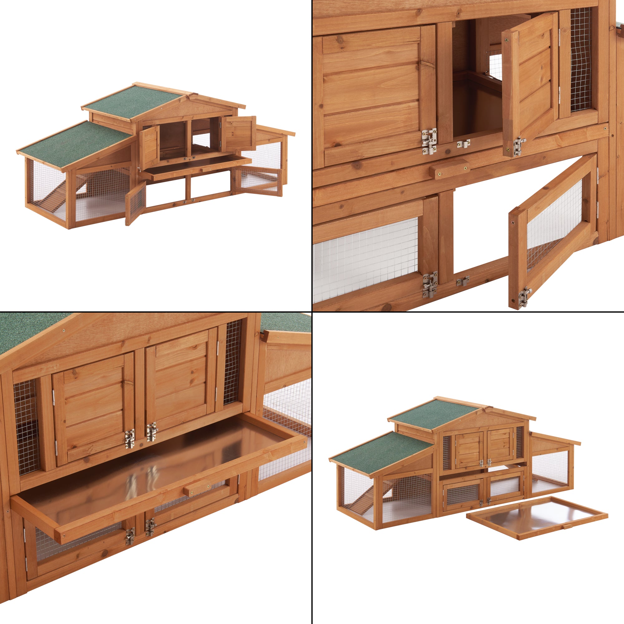 La madriguera de conejos de dos pisos ofrece a sus roedores un hábitat cómodo. Gracias a las dos rampas integradas, pueden moverse libremente y decidir si quieren retirarse al interior de la madriguera o permanecer en el área de libre circulación para pastar. A través de la malla metálica, siempre tendrá a sus favoritos a la vista.