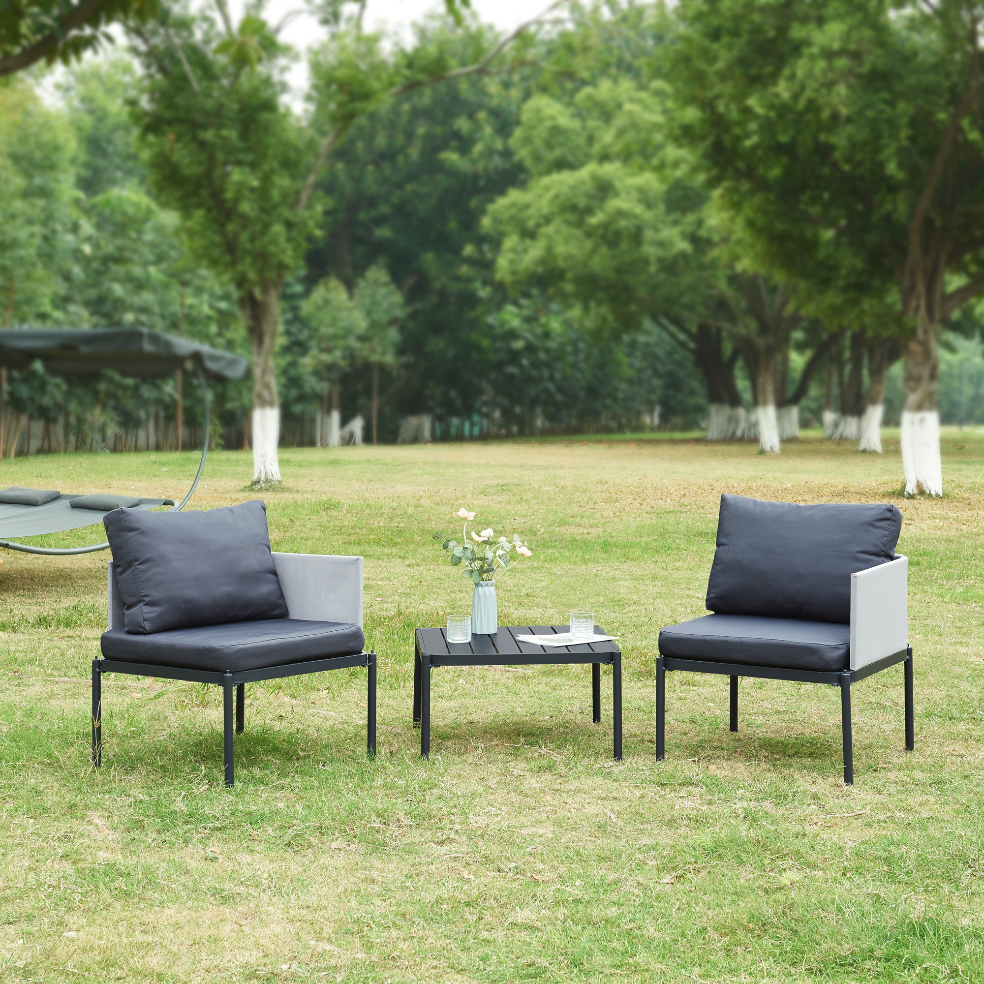 - Conjunto de muebles de jardín de tres piezas, compuesto por una mesa y dos sillas