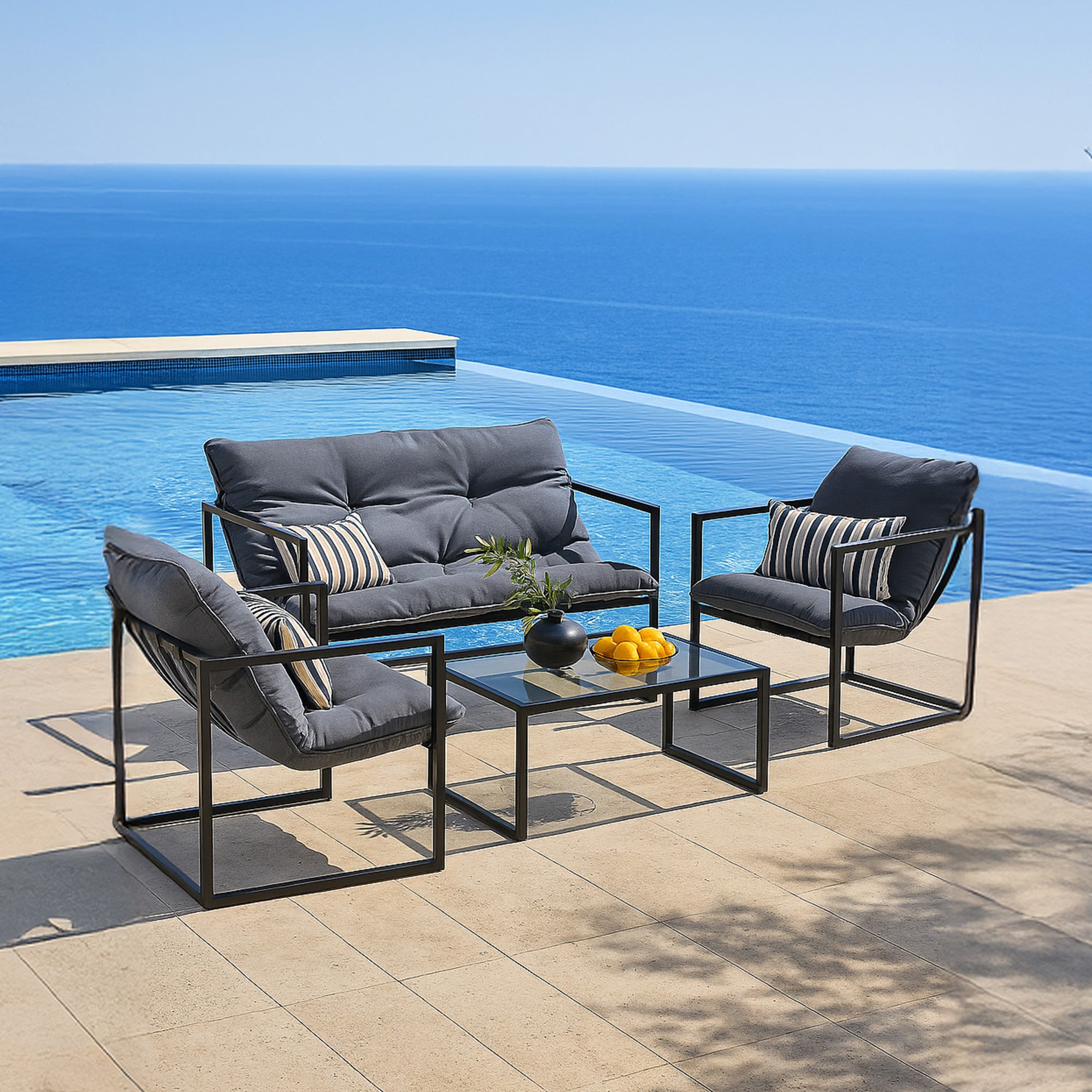 Estos muebles de jardín robustos y visualmente atractivos con una estructura de acero no solo son elegantes y modernos, sino que destacan por su excelente fabricación y su diseño elegante.
