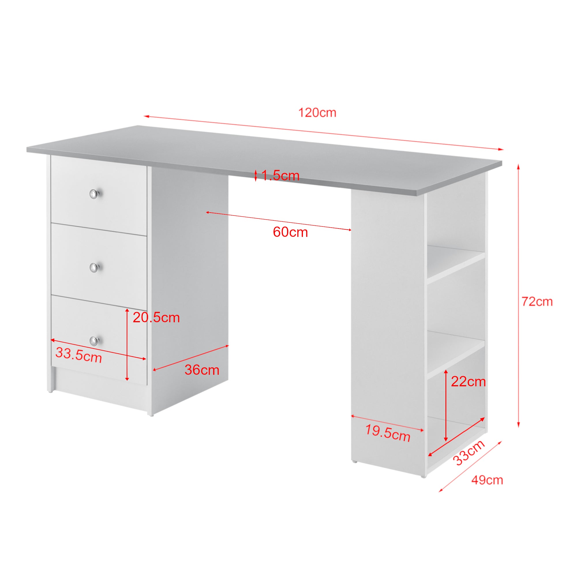 - Frente del cajón (AlxAn): 20,5x33,5 cm