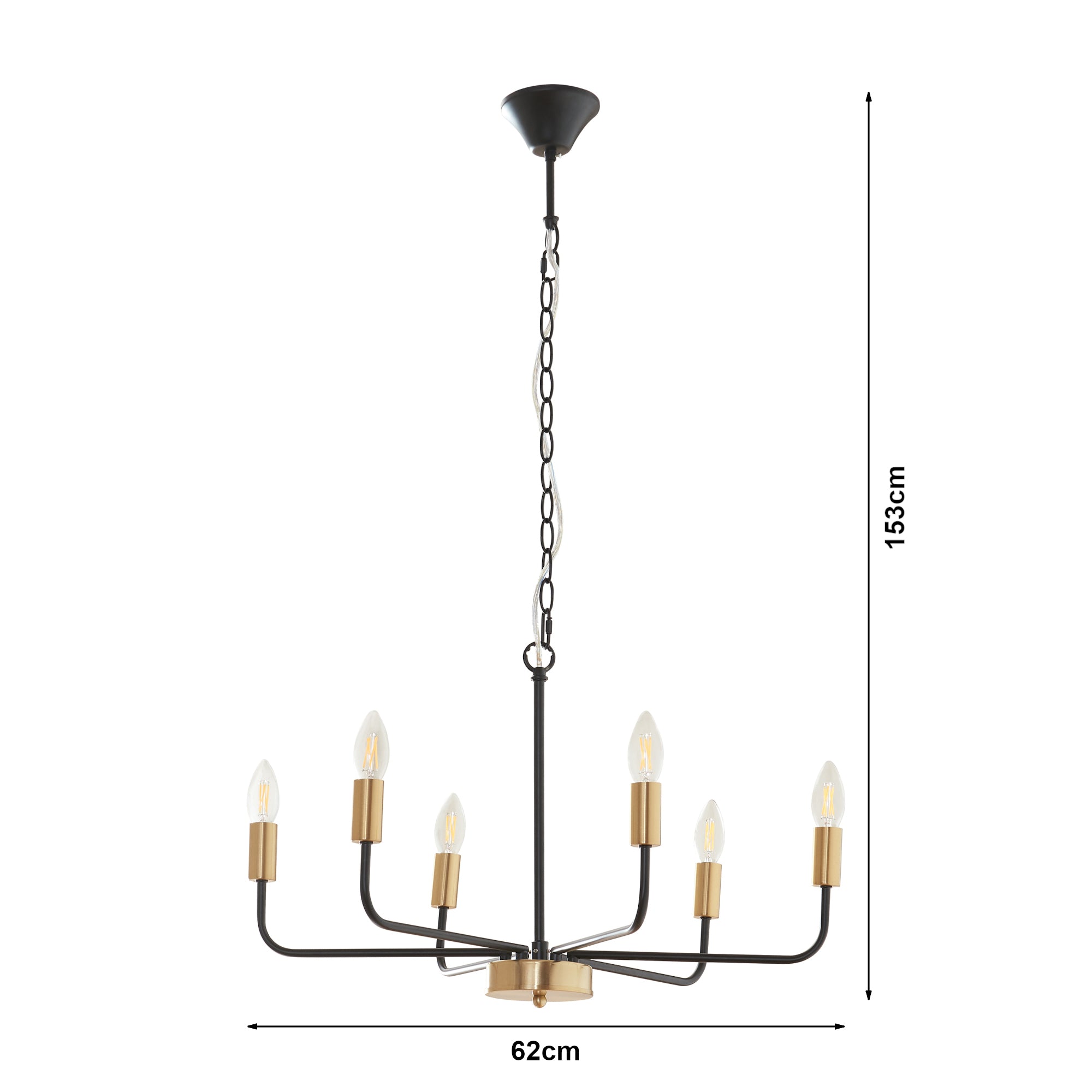 - Portalámparas: 6 x E14, máx. 40W (entrega sin bombillas)