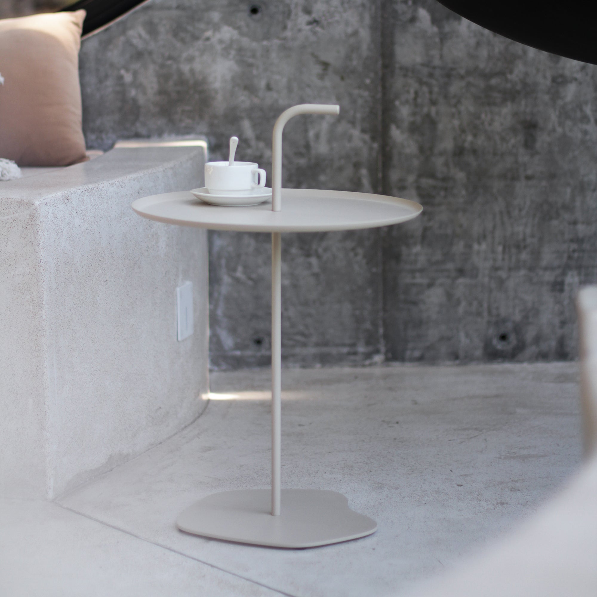 Un asa integrada facilita el traslado de la mesa y al mismo tiempo es un elemento de diseño atractivo. Gracias a su forma curva, la mesa se puede levantar fácilmente y transportar de manera flexible donde se necesite.