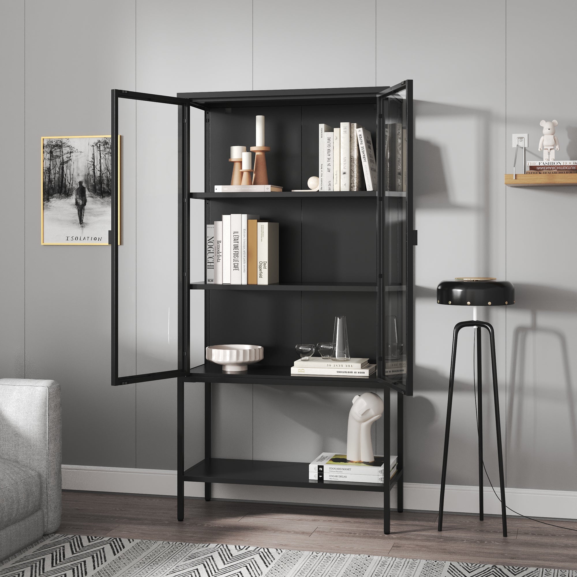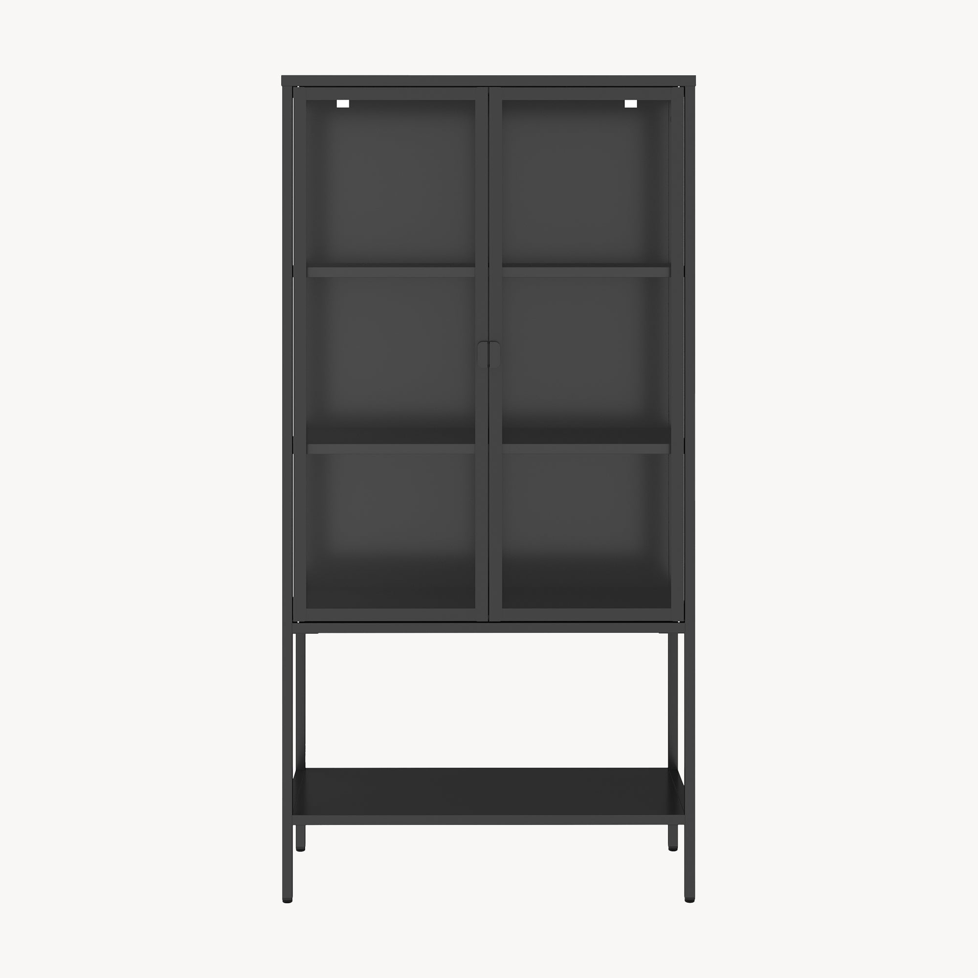 La moderna vitrina combina un diseño elegante con un espacio de almacenamiento práctico y es el complemento ideal para la sala de estar, la oficina o el comedor. Con dos puertas de vidrio y tres amplios compartimentos interiores, exhibe decorativamente tus piezas favoritas.